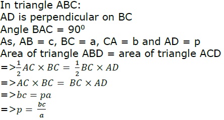 In a triangle ABC, AD is perpendicular on BC. If ∠BAC = 90°, AB = c, BC = a, CA = b and AD = p, then which one of the following is correct?