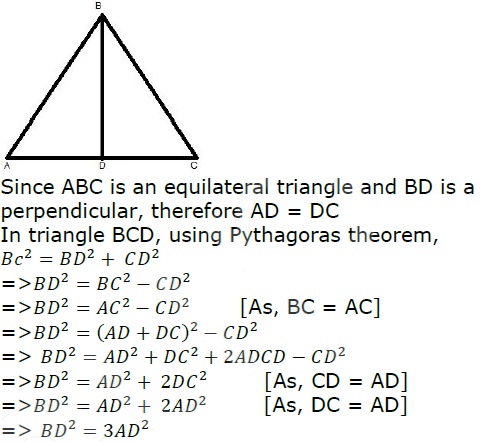 In an equilateral triangle ABC, BD is drawn perpendicular to AC. What is BD2 equal to?