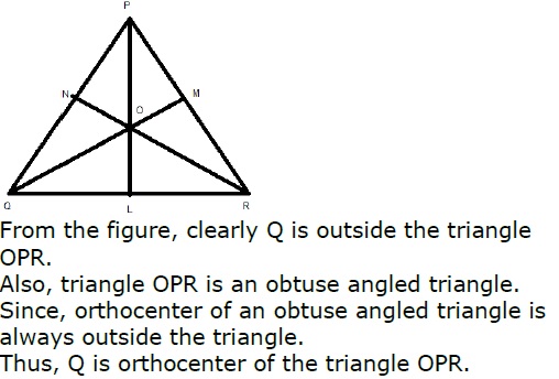 If PL, QM and RN are the altitudes of triangle PQR whose orthocentre is O, then Q is the orthocentre of the triangle
