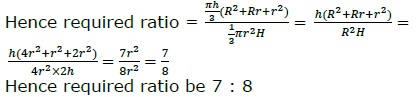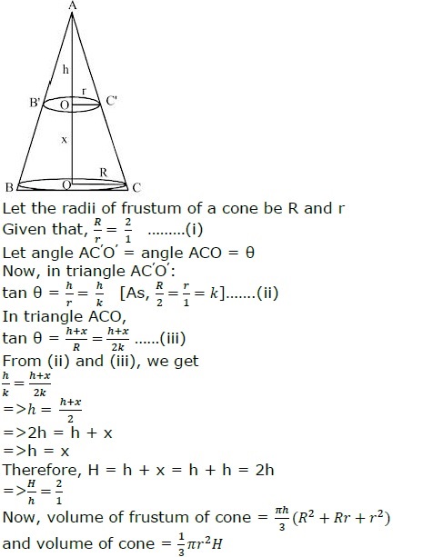 The radii of the frustum of a right circular cone are in the ratio 2 : 1. What is the ratio of the volume of the frustum of the cone to that of the whole cone?