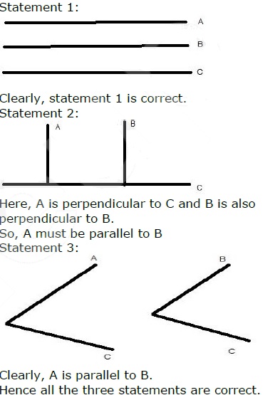Consider the following statements in respect of three straight lines A, B and C on a plane: