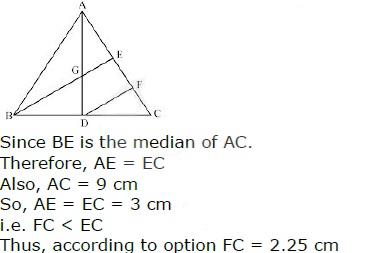 In a triangle ABC, the medians AD and BE intersect at G. A line DF is drawn parallel to BE such that F is on AC. If AC = 9 cm, then what is CF equal to?