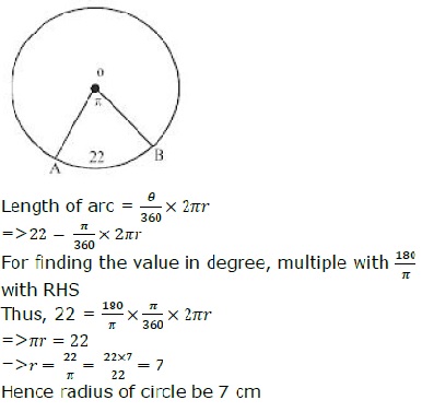 An arc of a circle subtends an angle ?? at the centre. If the length of the arc is 22 cm, then what is the radius of the circle?