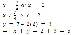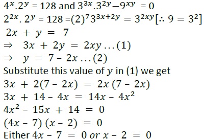 If 4??2?? = 128 and 33??32?? − 9???? – 9xy = 0, then the value of ?? + ?? can be equal to