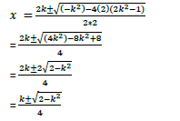 x2 − y2 = 0 and (x − k)2 + y2=1 x2 − k2 − 2kx + y2 − 1 = 0 Here we put y2 = x2 x2 + k2 − 2kx + x2 − 1 = 0