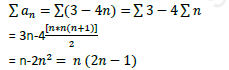 If an = 3 − 4n, then what is a1 + a2 + a3 + ........ an equal to?