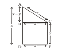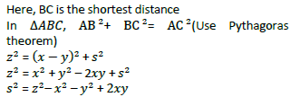 The heights of two trees are x and y, where x > y.The tops of the trees are at a distance z apart. If x is the shortest distance between the trees, then what