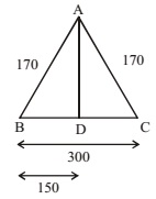 The base of an isosceles triangle is 300 unit and each of this equal sides is 170 units. Then the area of the triangle is
