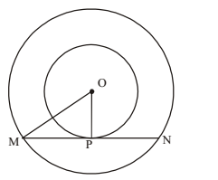 MN = 24 cm, MP = 12 cm Radius of outer circle =26/2= 13 cm OP = √(OM)2 − (MP)2 = √169 – 144 = √25 = 5 cm