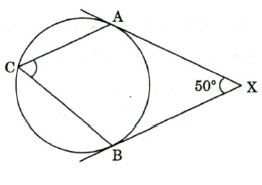 In the figure given below, XA and XB are two tangents to a circle, If AXB = 50o and AC is parallel to XB, then what is ACB equal to?