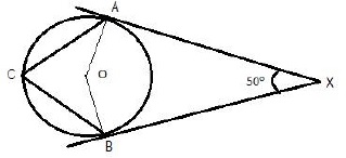 Thus, angle AOB = 360 – (90 + 90 + 50) = 130o