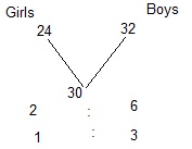 So the number of girls will be =( 1/(1+3))*100 = 25