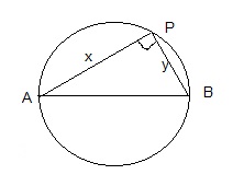 A line segment AB is the diameter of a circle with centre at O having radius 6.5 cm . Point P is in the plane of the circle such that AP=x and BP =y.In which one of the following cases the point P does not lie on the circle?