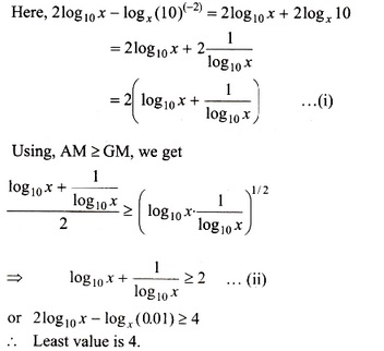 Multiple Choice Questions on The least value of the expression 2log10 x minus logx 1 100 for x gt 1 is ........ for CDS Exam Preparation