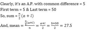 What is the average (arithmetic mean) of 5, 10, 15, 20, 25, 30, 35, 40, 45, 50