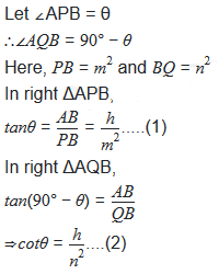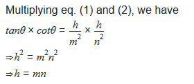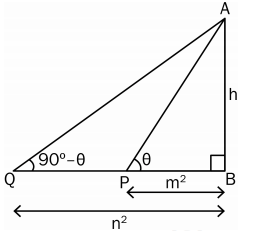 The angles of elevation of the top of a tower from two points P and Q at distances m2 and n2 respectively, from the base and in the same straight line with it are complementary. The height of the tower is