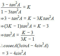 where if k is a real number,then cosecA(3 sinA- 4sin3 A) is equal to