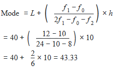 he maximum frequency in the given frequency distribution is 12. Therefore, modal class = 40 - 50