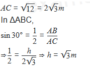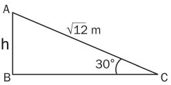 A pole is standing erect on the ground which is horizontal. The tip of the pole is tied tight with a rope of length √12 m to a point on the ground. If the rope is making 30° with the horizontal, then the height of the pole is