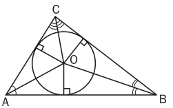 O is equidistant from the three sides of ΔABC. Therefore, O is the incentre of ΔABC. The incentre is the point of intersection of the bisectors of the angles of the triangle. ∴∠OAC=∠A/2, ∠OAB=∠C/2 , and ∠OBA=∠B/2 In ΔABC ∠A+∠B+∠C=180° ⇒∠A/2+∠B/2+∠C/2=90° ⇒∠OAC+∠OBA+∠OCB=90° Hence, statement 1 is correct.