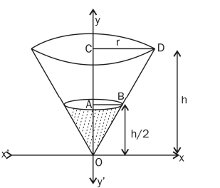 Let V be the volume of an inverted cone with vertex at origin and the axis of the cone is along positive y-axis. The cone is filled with water up to half of its height. The volume of water is