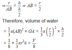 Let r and h be the radius and height of the cone, respectively. In ΔCOD and ΔOAB ∠COD = ∠AOB (Common) ∠OCD = ∠OAB (90° each) ∴ ΔOCD ≈ ΔOAB (AA similarity) ⇒CD/AB =OC/OA (Corresponding sides are proportional)