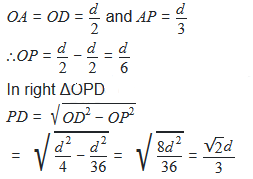 Now, CD = 2PD (Perpendicular from the centre to the chord bisects the chord) ∴CD=2×√2d/3 =2√2d/3
