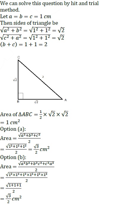 The sides of a triangle are given by and (b + c) where a, b, c are positive. What is the area of the triangle equal to?