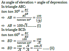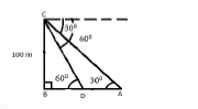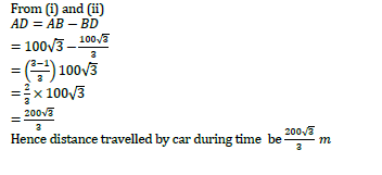 A man from the top of a 100 m high tower sees a car moving towards the tower at an angle of depression 30 After some time, the angle of depression becomes 60o. What is the distance travelled by the car during this time?