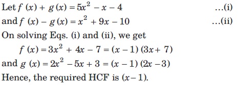 The sum and difference of two expressions are 5x2-x-4 and x2 +9x-10, respectively. The HCF of the two expressions will be