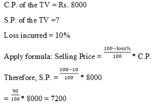 A man purchases a TV for Rs. 8000 and sells it at 10% loss. What is the selling price of T.V?