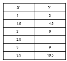 The chart above displays a relationship between values of X and Y. Given this relationship, what would be the value of Y that is missing?
