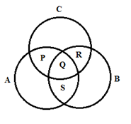 Given below is a diagram of three circles A, B & C inter-related with each other. The circle A represents the class of Indians, the circle B represents the class of scientists and class C represents the class of politicians. P, Q, R, S represent different regions. Select the code containing the region that indicates the class of Indian scientists who are not politicians.