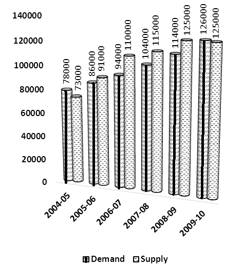 Refer to the graph below Acrylic Fabric: Demand – Supply (in tonnes)