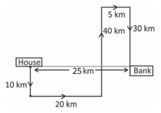 From the diagram, the shortest distance between her house and her bank is 25 km. Hence, option (2) is the correct answer.