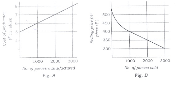 The manufacturing cost and projected sales for a product are shown in the above figures A and B respectively. What is the minimum number of pieces that should be manufactured to avoid a loss?