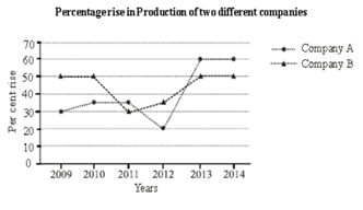 Average per cent rise in the production of Company B is more than the average per cent rise in the production of Company A.