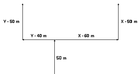 Two friends X and Y start running and they run together for 50 m in the same direction and reach a point. X turns right and runs 60 m, while Y turns left and runs 40m. Then X turns left and runs 50m and stops, while Y turns right and runs 50 m and then stops. How far are the two friends from each other now?