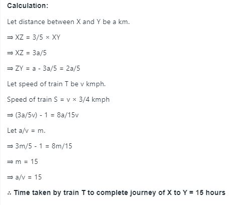 Train T leaves station X for station Y at 3 pm. Train S, traveling at three quarters of the speed of T, leaves Y for X at 4 pm. The two trains pass each other at a station Z, where the distance between X and Z is three-?fths of that between X and Y. How many hours does train T take for its journey from X to Y ?