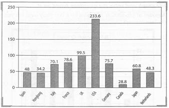 The bar chart given below represents top 10 exporters and their export value (in billion $) in 2008.