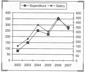 The line chart given below represents the salary and expenditure (in Rs.) of Guru Gulab Khatri for the given period.