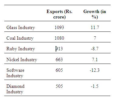 Multiple Choice Questions on The following table given the exports of top six industries in value terms from India in 2007 The ov........... for Civil Services Exam (CSAT) Preparation