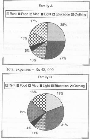 In the above question, how many heads will have a low percentage share in the combined total expenses of both the families than the percentage share of family B under the same heat?