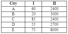 A survey of movie goers from five cities A, B, C, D and E, is summarized below. The first column gives the percentage of viewers in each city who watch less than one movie a week. The second column gives the total number of viewers who view one or more movies per week