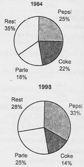 72 million bottles of colas were consumed in 1984 and 115 million in 1998