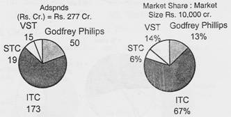 The following pie charts are advertising expenditure and market size of cigarette sales