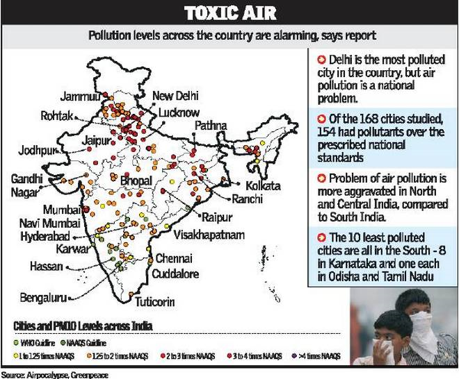 A Greenpeace report shows 90% of cities studied had pollution levels over prescribed standards.