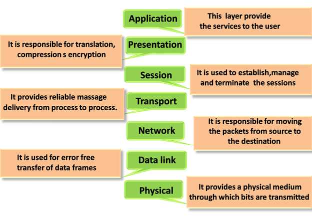 There are the seven OSI layers. Each layer has different functions. A list of seven layers are given below:
