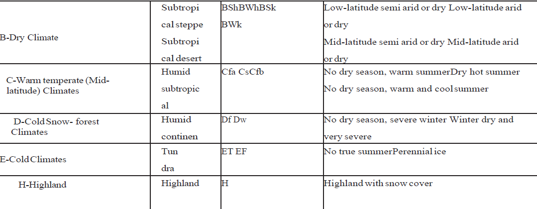 (ii) Dw- cold climate with dry winter. The severity of winter is more pronounced in higher latitudes.