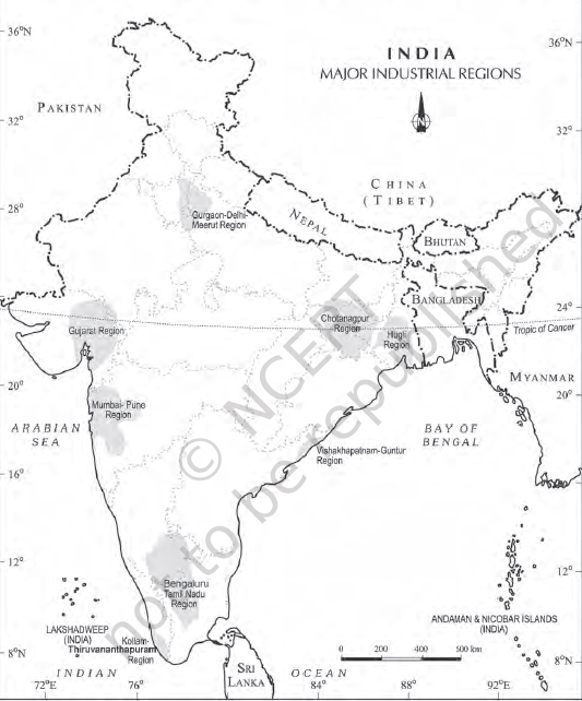1.Mumabi-Pune Region, 2. Hugli Region, 3. Bangalore-Tamil Nadu Region, 4. Gujarat Region, 5. Chotanagpur Region, 6. Vishakhapatnam-Guntur Region, 7. Gurgaon-Delhi-Meerut Region, and 8. Kollam-Thiruvananthapuram Region